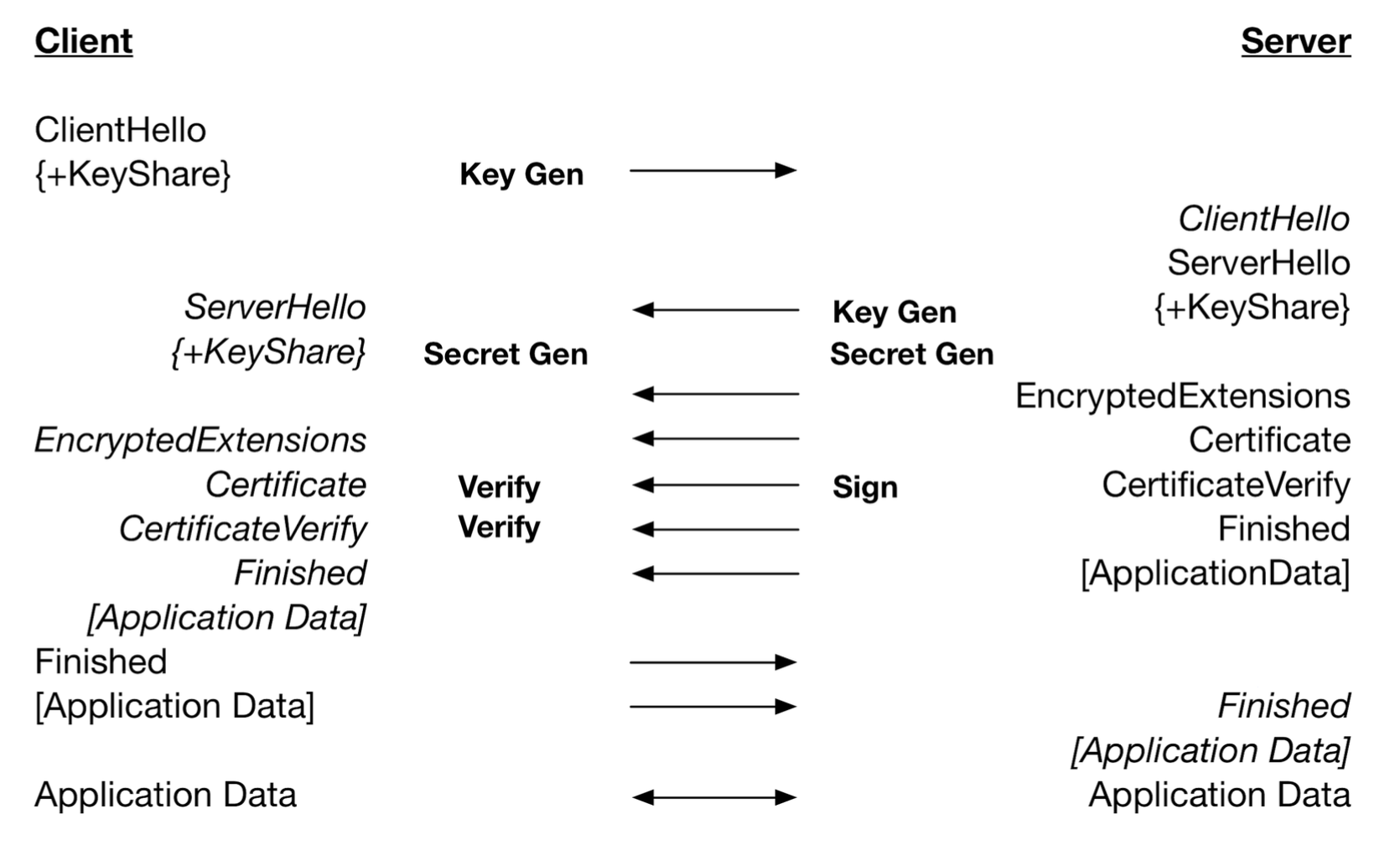 - Server Hello, EncryptedExtensions, Certificate, CertificateVerify