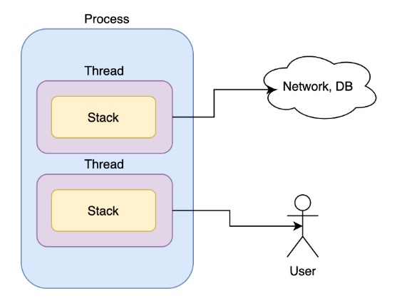- κ°κ°μ μ€λ λλ νλ‘μΈμ€ λ΄μμ Stack μμλ§ λ°λ‘ ν λΉλ°κ³ Code, Data, Heap μμμ μλ‘ κ³΅μ ν¨