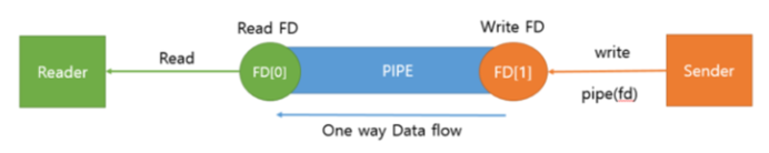 - ํ์ดํ๋ก ๋ ๊ฐ์ ํ๋ก์ธ์ค๋ฅผ ์ฐ๊ฒฐํ๊ณ ํ๋์ ํ๋ก์ธ์ค๋ ๋ฐ์ดํฐ๋ฅผ ์ฐ๊ธฐ๋ง, ๋ค๋ฅธ ํ๋๋ ๋ฐ์ดํฐ๋ฅผ ์ฝ๊ธฐ๋ง ํจ