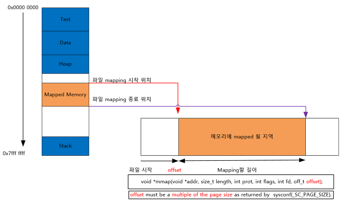 - ํ๋ก์ธ์ค์ ๊ฐ์ ๋ฉ๋ชจ๋ฆฌ ์ฃผ์ ๊ณต๊ฐ์ ํ์ผ์ ๋งคํํ ๋ค ๊ฐ์ ๋ฉ๋ชจ๋ฆฌ ์ฃผ์๋ก ์ง์ ์ ๊ทผํ๋ ๊ฒ์ผ๋ก ํ์ผ ์ฝ๊ธฐ/์ฐ๊ธฐ๋ฅผ ๋์