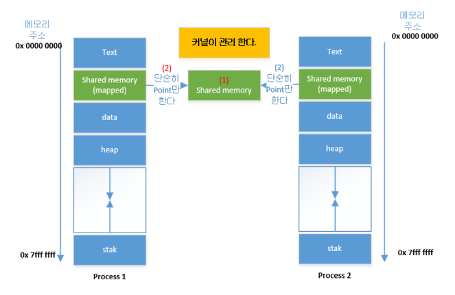 - Text์ Data ์์ญ ์ฌ์ด ๊ณต์ ๋ฉ๋ชจ๋ฆฌ ํฌ์ธํ ๊ณต๊ฐ (๊ฐ ํ๋ก์ธ์ค๊ฐ ๋ฉ๋ชจ๋ฆฌ ์์ญ์ ์ฒจ๋ถ๋๋ ๋ฐฉ์)