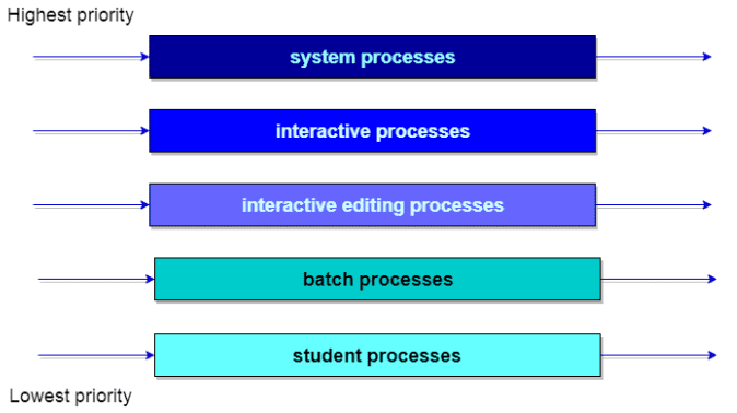 - ์ฐ์ ์์๊ฐ ๋์ ํ๋ ์์ Time Quantum ํ ๋น. ์ฐ์ ์์๊ฐ ๋ฎ์ ํ๋ ํฐ Time Quantum ํ ๋น