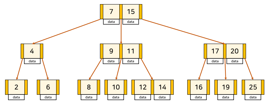 - ๋ฆฌํ ๋ ธ๋์๋ง ๋ฐ์ดํฐ๋ฅผ ์ ์ฅ, ๋ค๋ฅธ ๋ ธ๋์์๋ ์์ ๋ ธ๋๋ฅผ ๊ฐ๋ฆฌํค๋ ํฌ์ธํฐ๋ง ์ ์ฅ