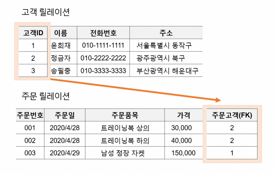 - Ex) μΈλ ν€: μ£Όλ¬Έ ν μ΄λΈμ 'μ£Όλ¬Έκ³ κ°' μμ± | μ°Έμ‘° ν€: κ³ κ° ν μ΄λΈμ 'κ³ κ°ID'